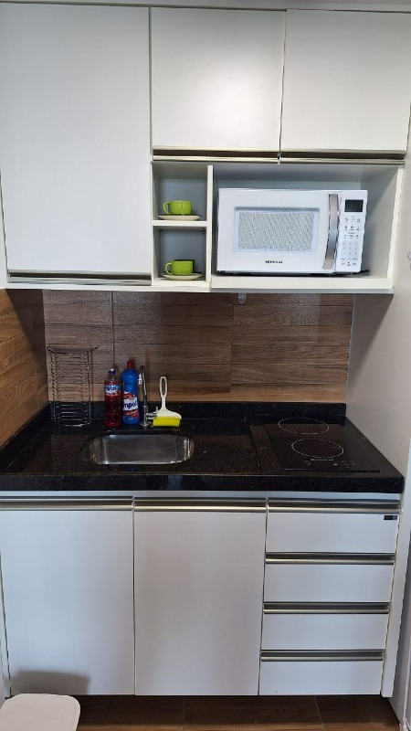 O Studio, com 33m² de área interna, mobiliado, nascente com excelente ventilação, dispõe de sala, cozinha com planejados, 01 wc social com armário e box, e 01 vaga de garagem coberta.