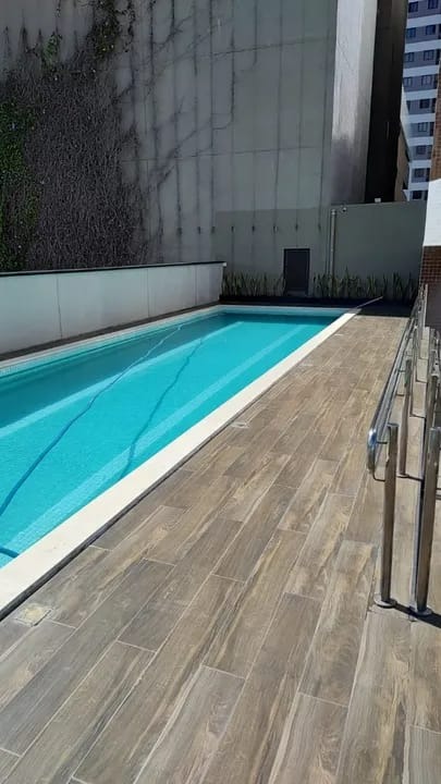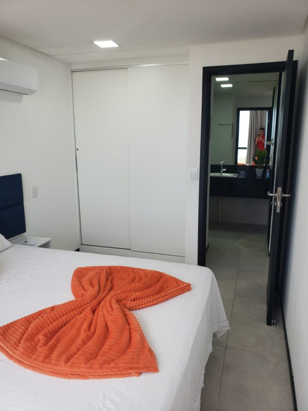 O apartamento, com 35m² de área interna, nascente e com vista pro mar, ele dispõe de sala para 02 ambientes, 01 quarto, 01 wc social com armário, cozinha com planejados e 01 vaga de garagem.