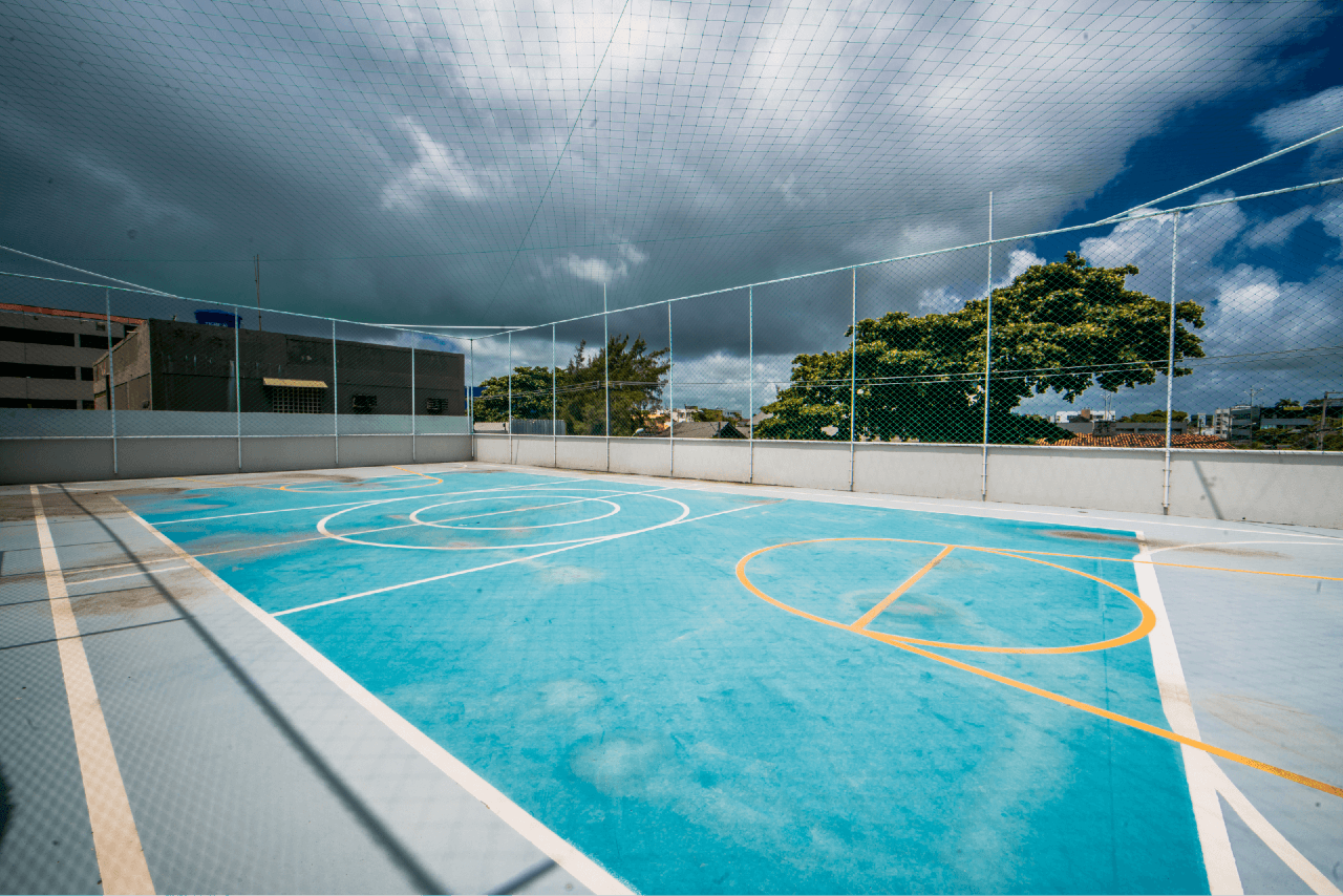 O Condomínio, estruturado, dispõe de portaria 24 horas, portão eletrônico, interfone, jardim, piscina, quadra poliesportiva, sauna, churrasqueira, salão de jogos, playground e salão de festas.