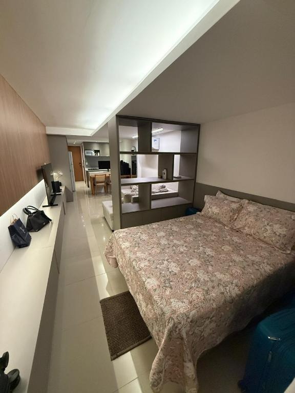 O apartamento com 40m² de área interna e mobiliado conforme fotos, dispõe de sala, 01 quarto, 01 wc social com armários e box, cozinha com armários planejados, área de serviço e 02 vaga de garagem cobertas.