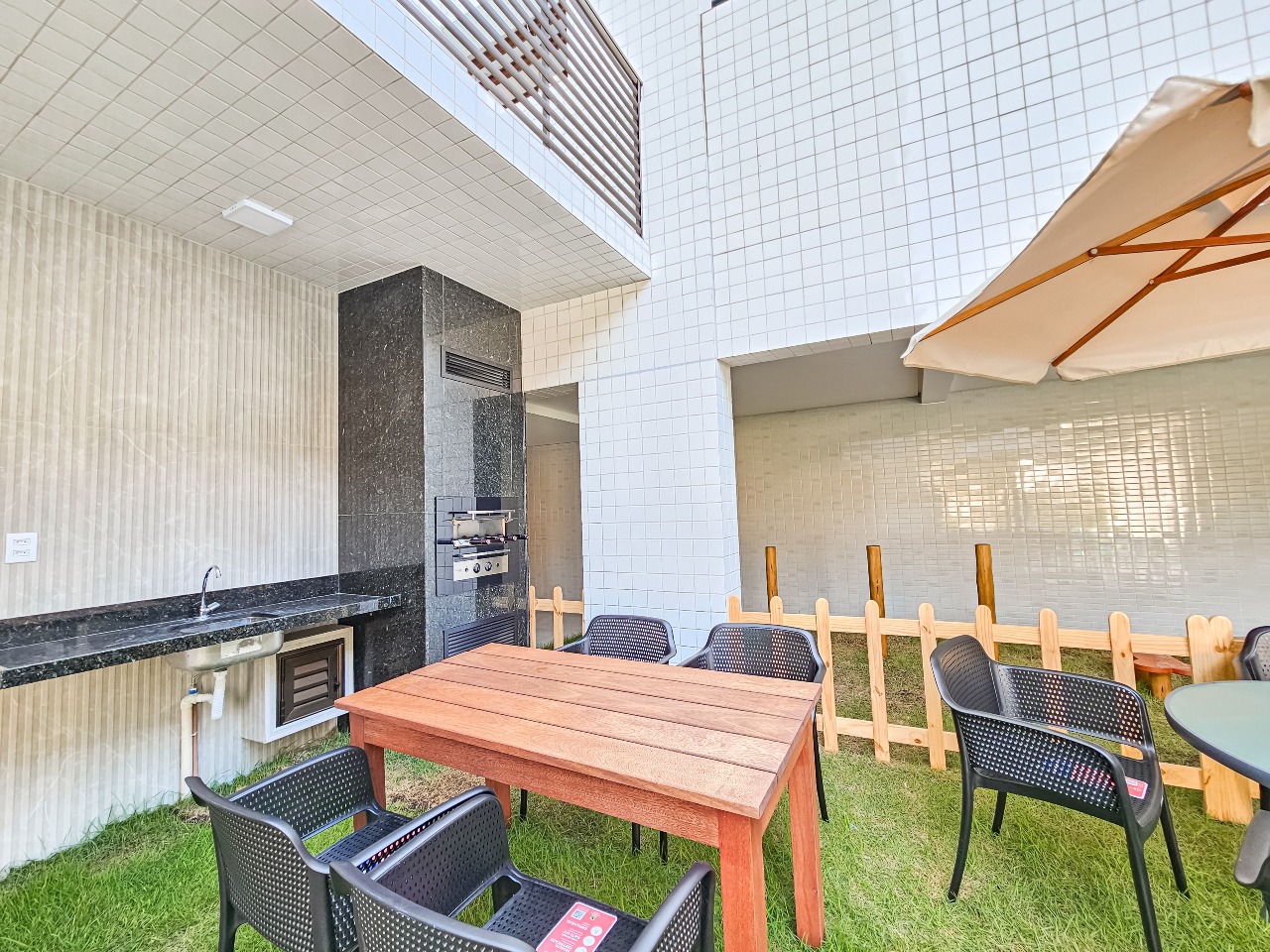 Com plantas de 51/58/61m², possui 2 quartos sendo 1 suíte, cozinha integrada com a sala e varanda gourmet, área de serviço e vaga na garagem.