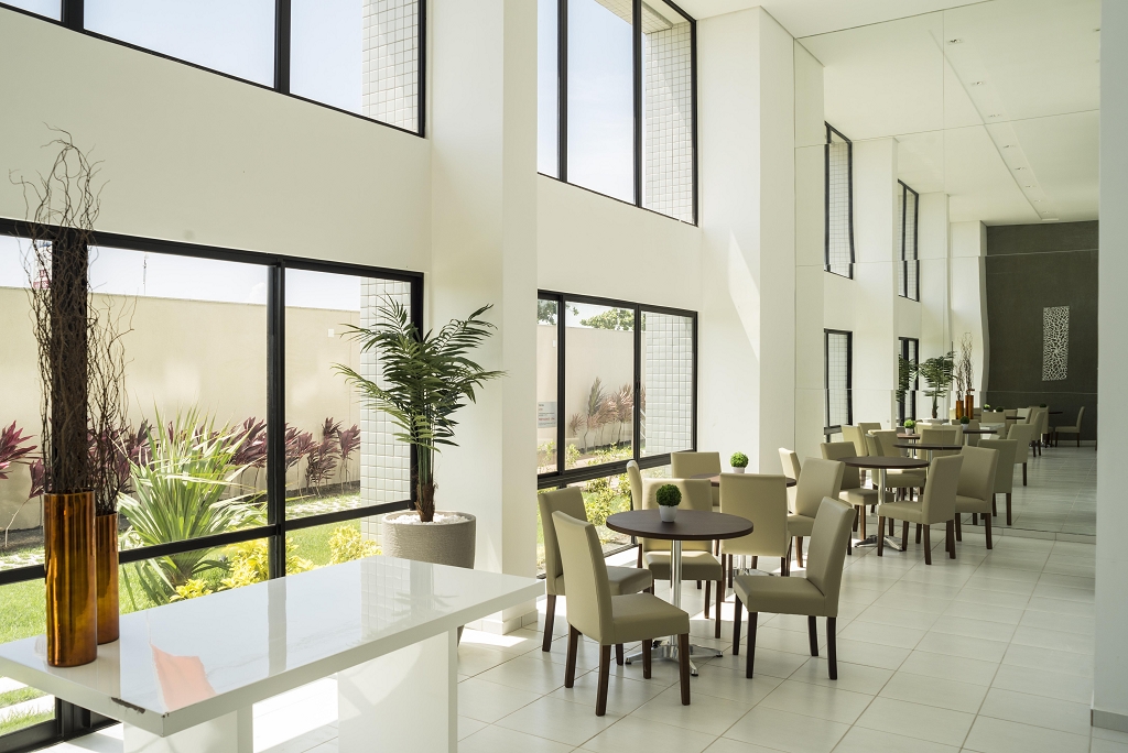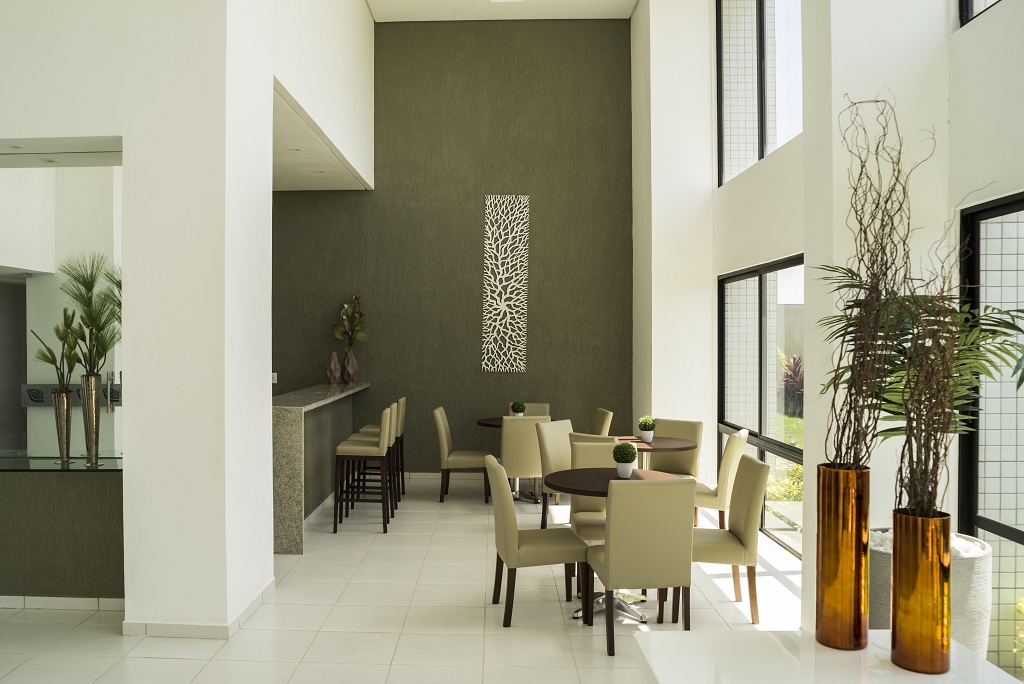 O Condomínio, estruturado, dispõe de portaria 24 horas, recepção, portão eletrônico, central de gás, piscina, área de convivência, salão de festas, salão de jogos, academia, piscina, churrasqueira e sauna.