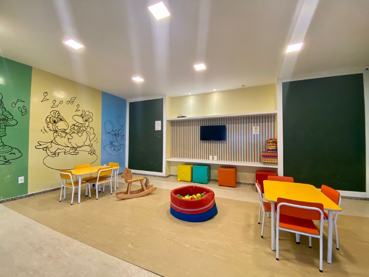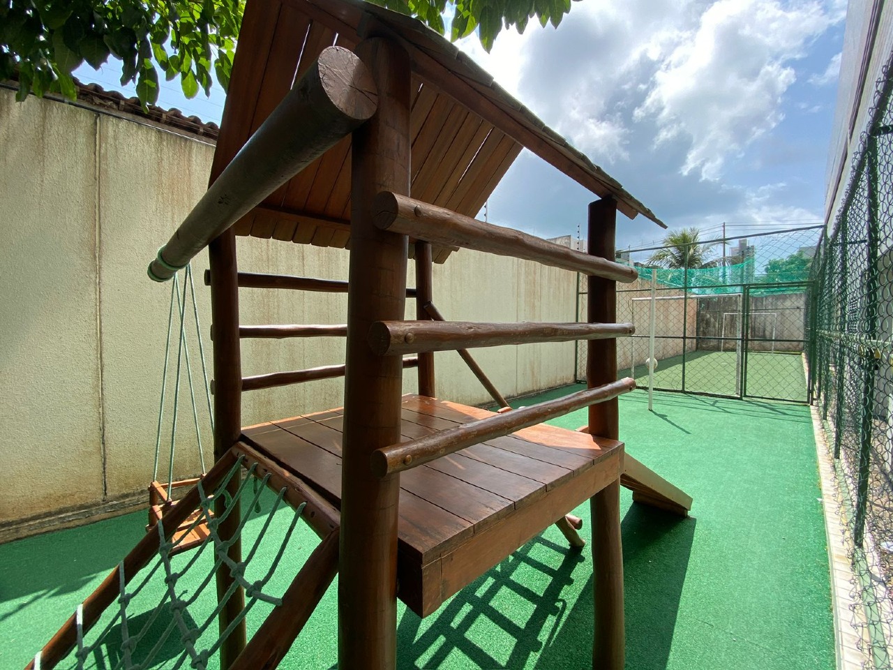 O condomínio oferece uma estrutura completa, incluindo portaria 24 horas, guarita, portão eletrônico, antena coletiva e central de gás. Os residentes também têm acesso a uma piscina, área de convivência, salão de festas, playground, brinquedoteca, salão de jogos, academia, campinho de futebol e sala de estudo.