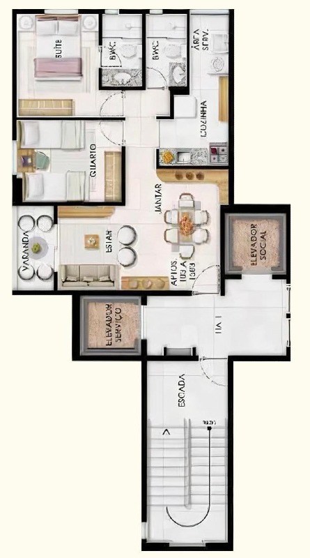 O apartamento, com 53 m² de área interna, nascente e com excelente ventilação, dispõe de sala para 02 ambientes, varanda com jardim vertical, 02 quartos com armários, sendo 01 suíte, 01 wc social, cozinha com armários, área de serviço, 01 vaga de garagem.