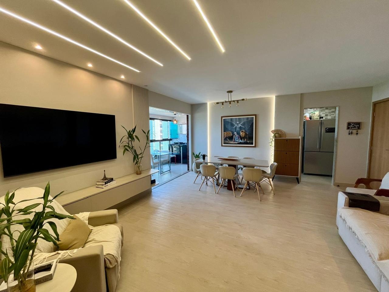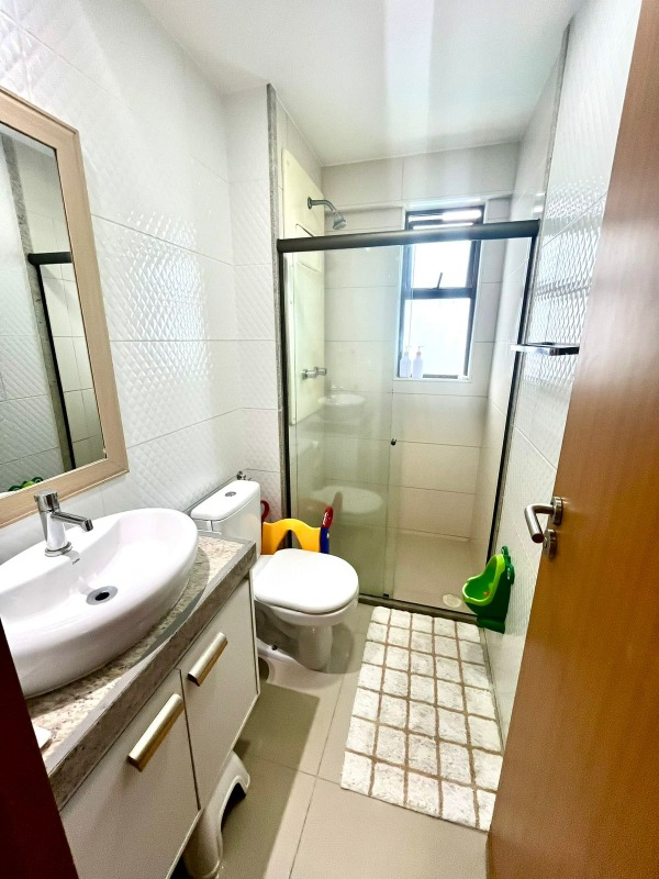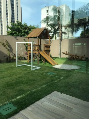 O apartamento, com 97m² de área interna, e nascente, dispõe de sala para 02 ambientes, varanda, 02 quartos sendo 01 suítes, 01 wc social, cozinha, área de serviço, despensa e 02 vagas de garagem cobertas.