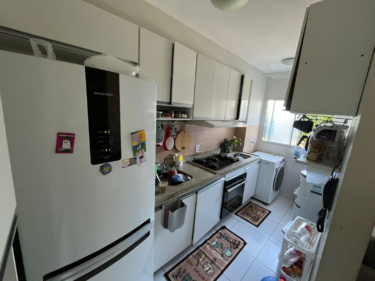 O apartamento com 50m² de área interna, dispõe de sala para 02 ambientes, 02 quartos com armários, 01 wc social com box, cozinha com armários e 01 vaga de garagem.