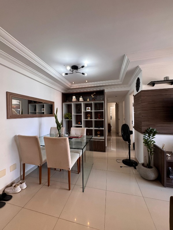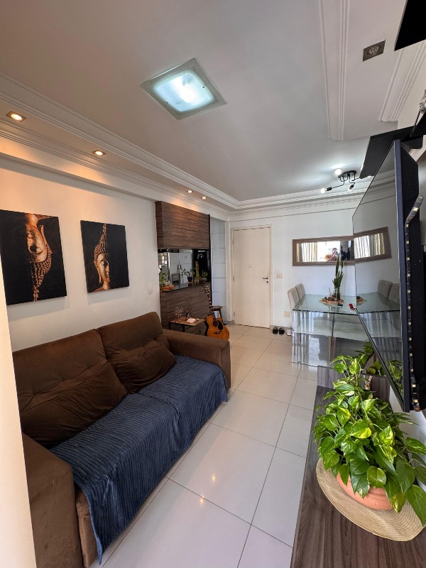 O apartamento, com 63m² de área interna, sul e com excelente ventilação, dispõe de sala para 02 ambientes, cozinha com planejados, área de serviço, 03 quartos sendo 01 suíte, 01 wc social com armário e box e 01 vaga de garagem.