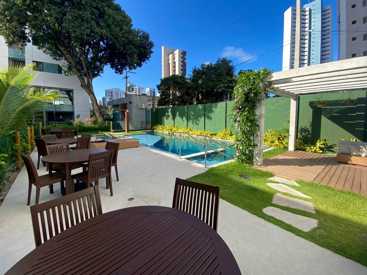 O Condomínio, totalmente estruturado, dispõe de 02 torres, portaria 24 horas, portão eletrônico, central de gás, gerador, interfone, 02 elevadores, piscina, quadra poliesportiva, salão de festas e churrasqueira, salão de jogos e salão de festas.