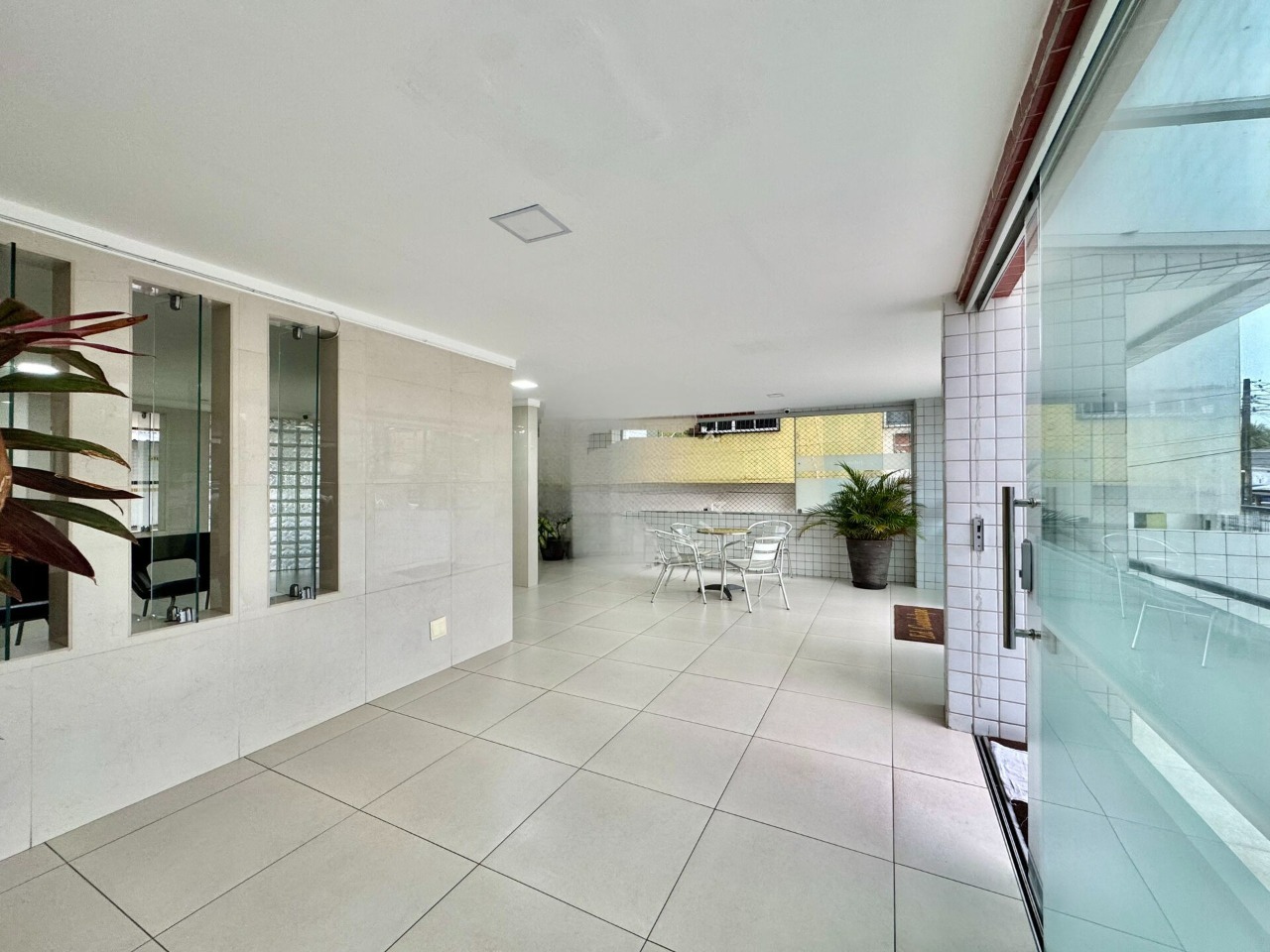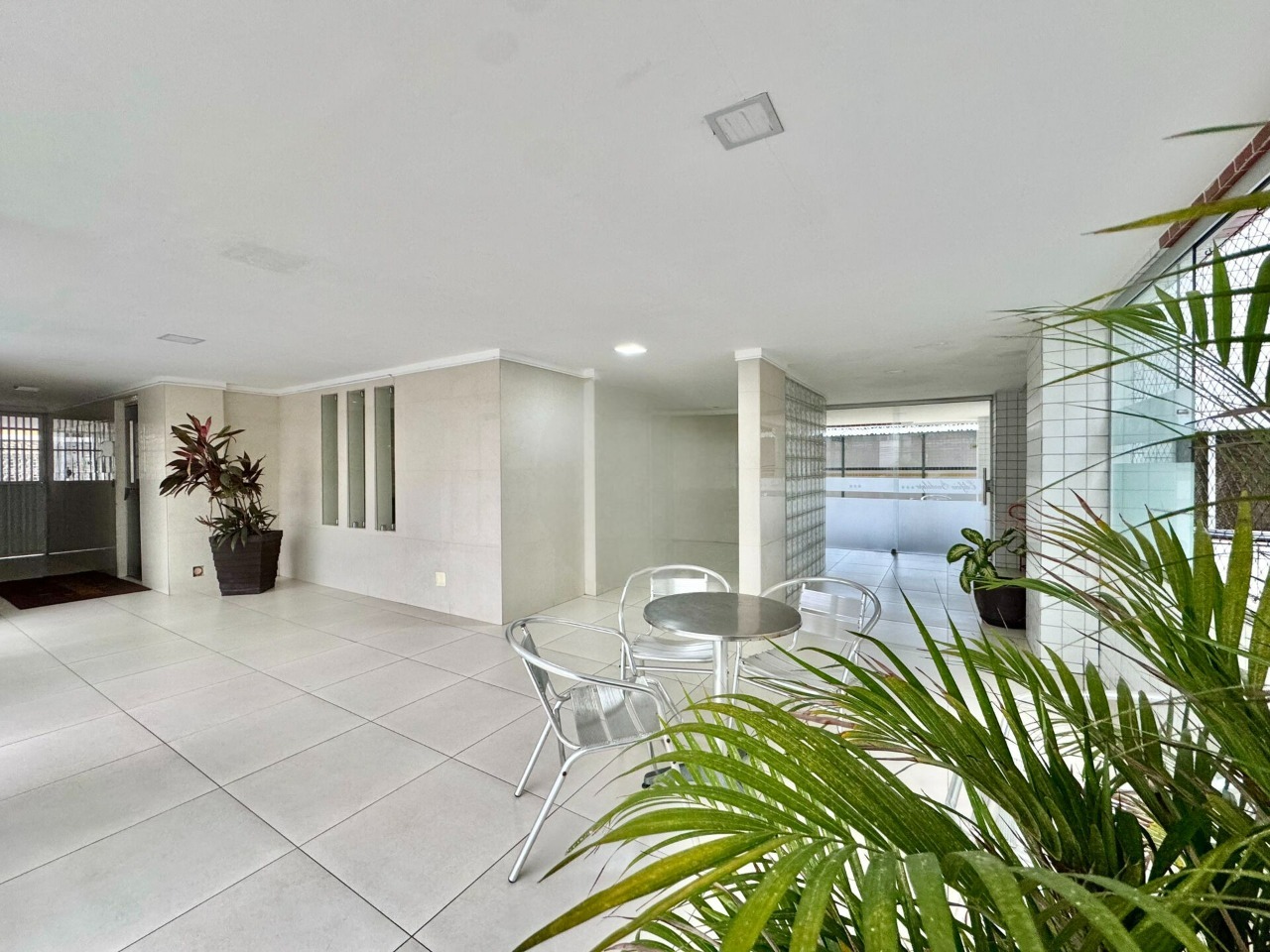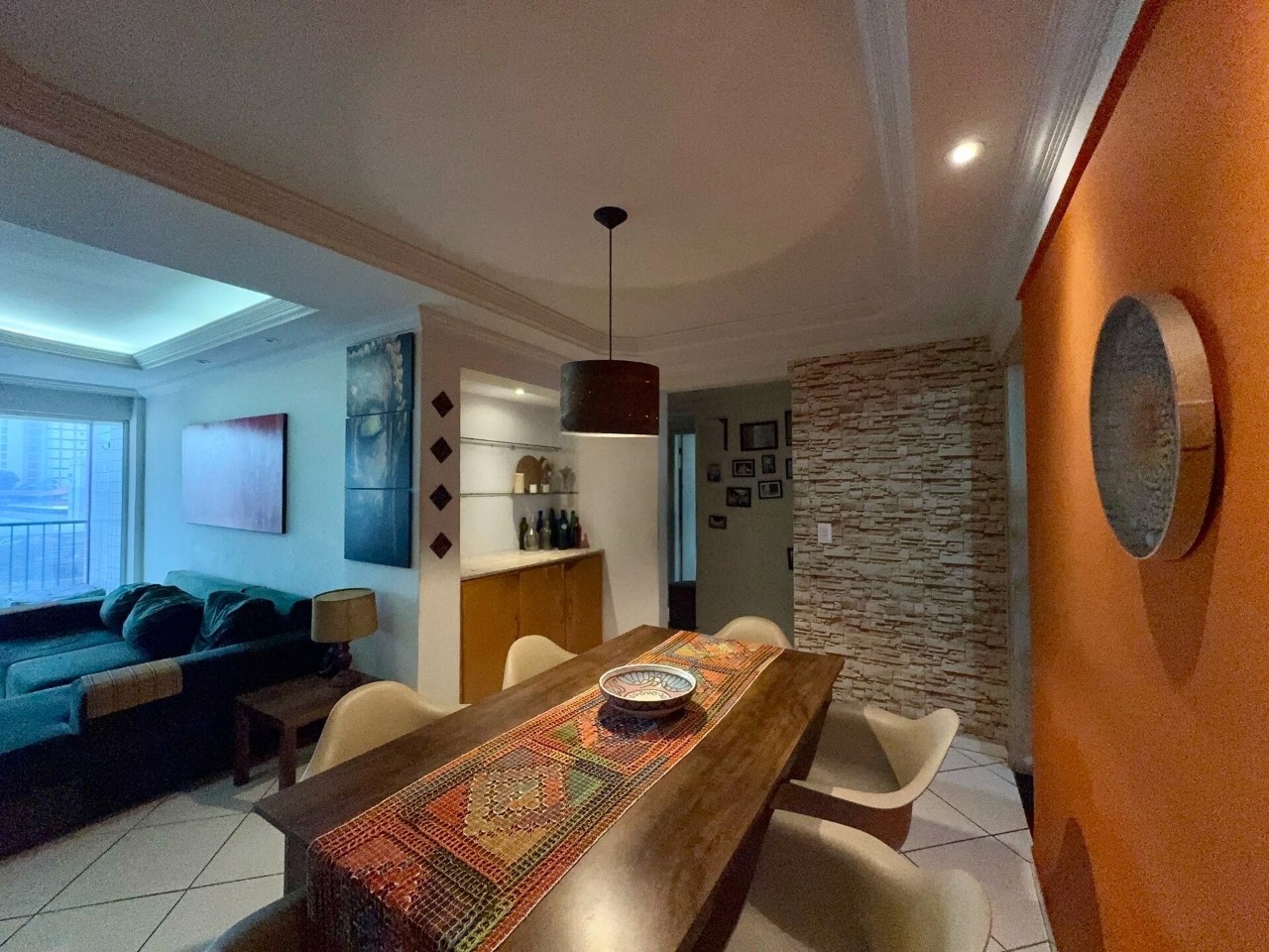 O apartamento com 117m² de área interna, nascente e com excelente ventilação, dispõe de sala para 02 ambientes, cozinha com armários, área de serviço, 03 quartos, sendo 01 suíte, 01 wc social com armário e box, e 01 vaga de garagem coberta.