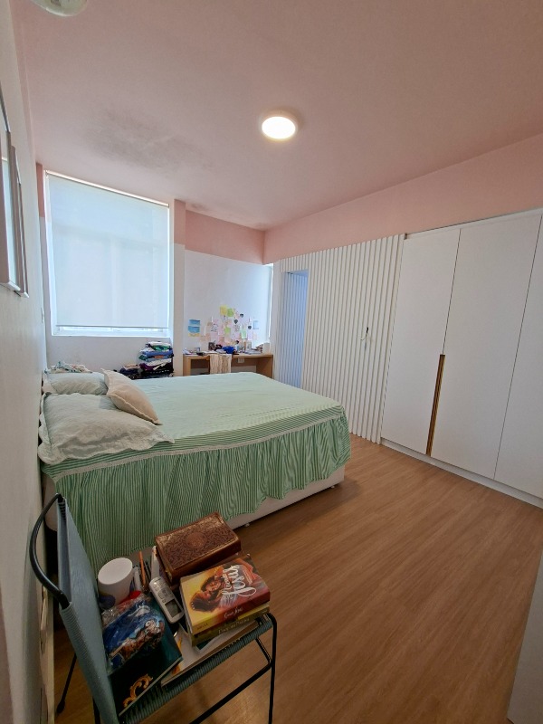 O apartamento com 180m² de área interna, nascente com uma excelente ventilação, dispõe de sala para 02 ambientes, varanda, cozinha, despensa, área de serviço com dependência completa de empregada , 03 quartos, sendo 01 suítes, 01 wc social e 02 vagas de garagem cobertas.