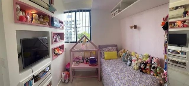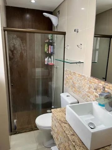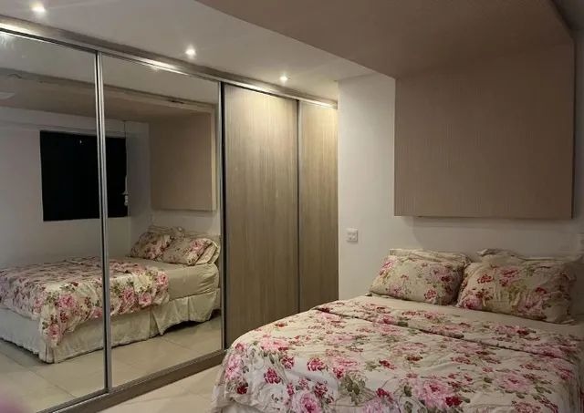 O apartamento, com 90m² de área interna, dispõe de sala para 02 ambientes, varanda, cozinha ampla, área de serviço, 03 quartos, 01 deles sendo uma suite, 01 wc social e 02 vagas de garagem.