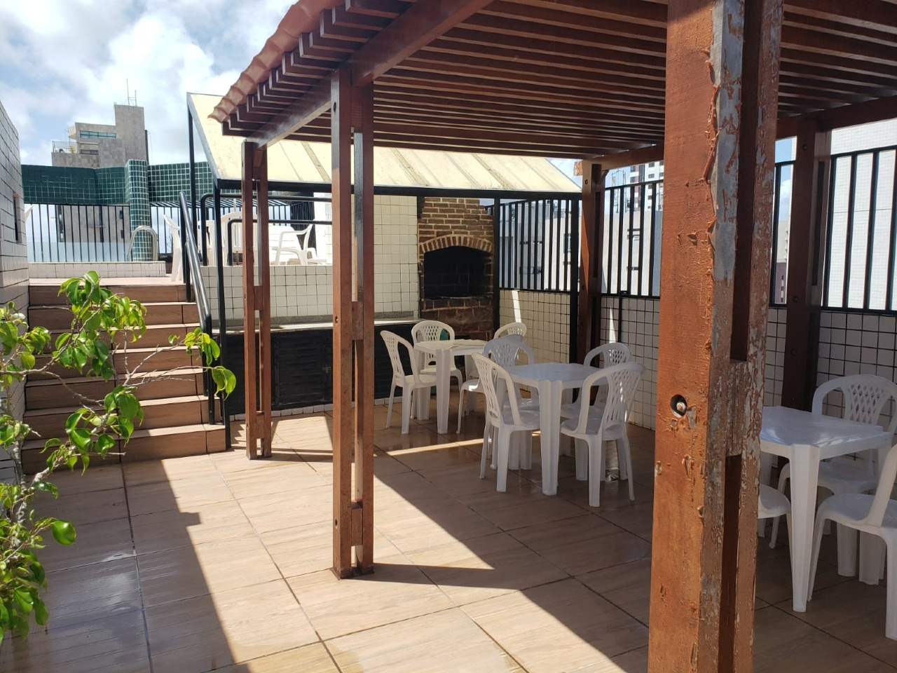 O apartamento, com 114m² de área interna, nascente, dispõe de sala para 02 ambientes, varanda, 03 quartos sendo 01 suítes, 01 wc social, cozinha, área de serviço com dependência completa de empregado e 02 vagas de garagem cobertas.