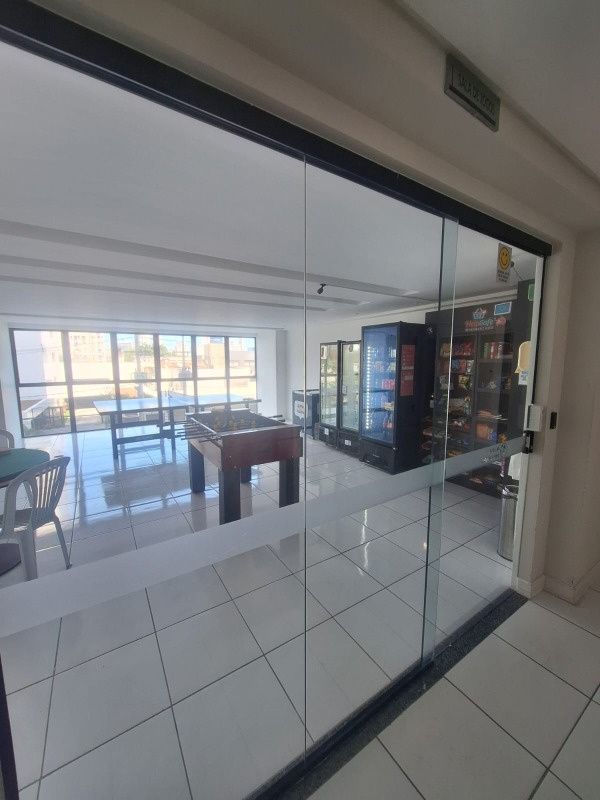 O Apartamento, com 84m² de área interna, dispõe de sala para 02 ambientes, varanda integrada com cortina de vidro, 03 quartos, sendo 01 suíte, dependência convertida para closet, 01 wc social com box e armário, cozinha com armários, área de serviço e 02 vagas de garagem cobertas.