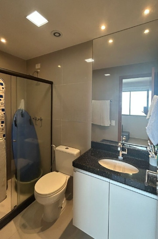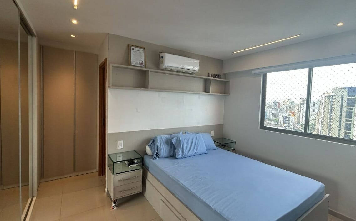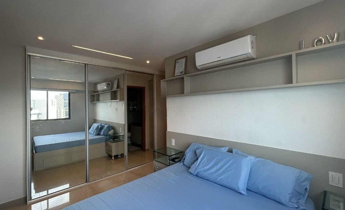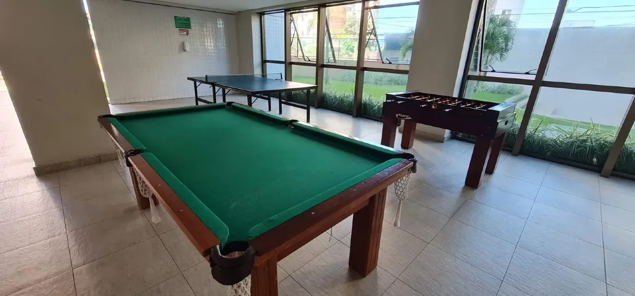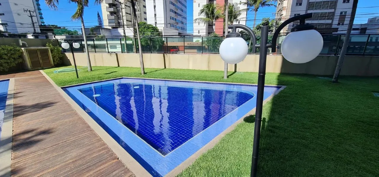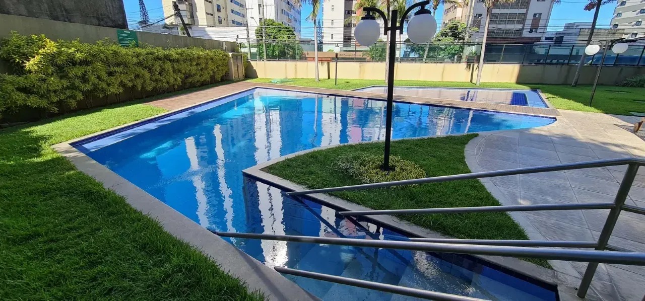 O apartamento com 120m² de área interna, nascente com uma excelente ventilação, dispõe de sala para 02 ambientes, varanda ampla, cozinha espaçosa com armários, área de serviço com dependência completa de empregada, 03 quartos, sendo 03 suítes, 01 wc social e 02 vagas de garagem.