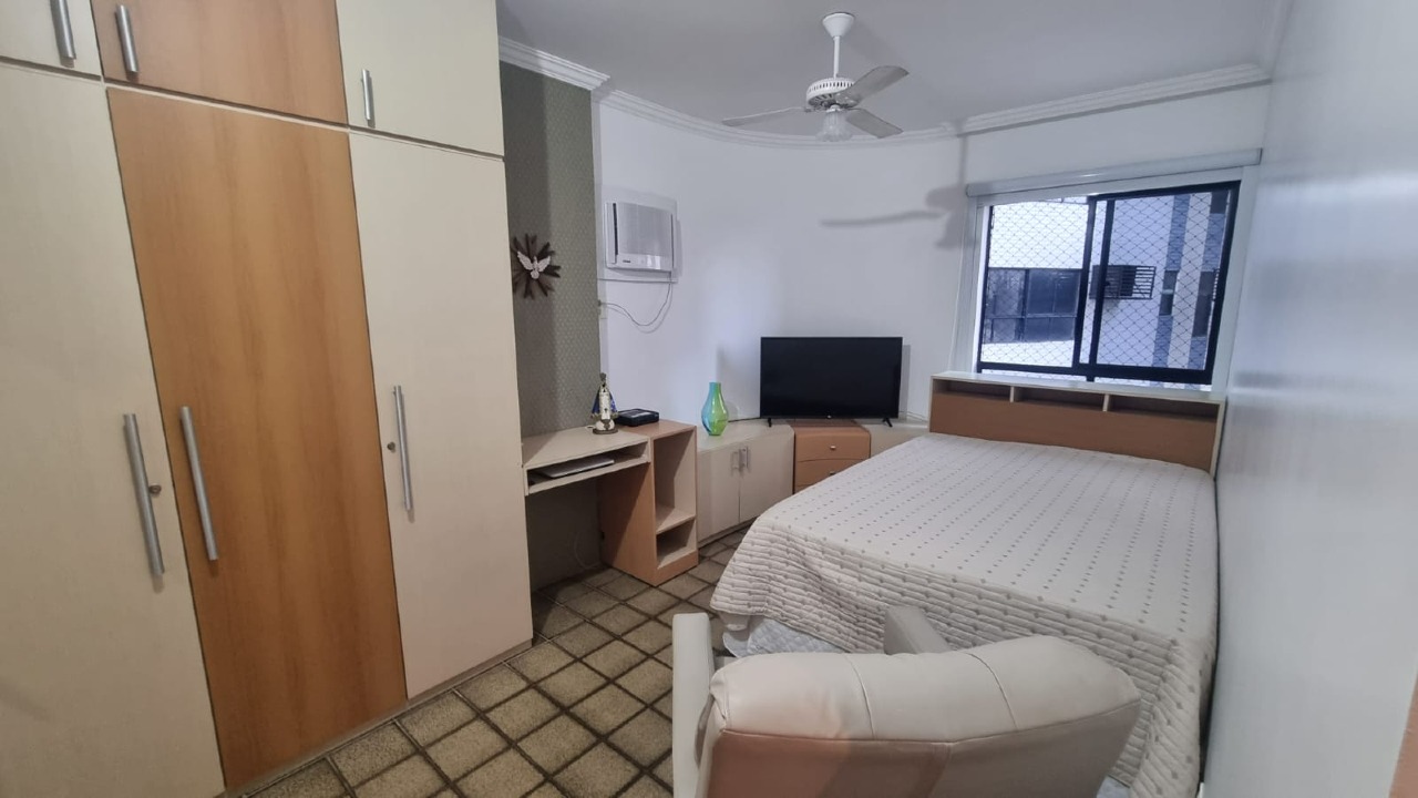 O apartamento, com 161m² de área interna, com excelente ventilação, dispõe de sala para 02 ambientes, varanda, cozinha espaçosa com armários, área de serviço com dependência completa de empregada, 04 quartos, sendo 02 suítes, 01 wc social com armário e box, e 02 vagas de garagem cobertas.