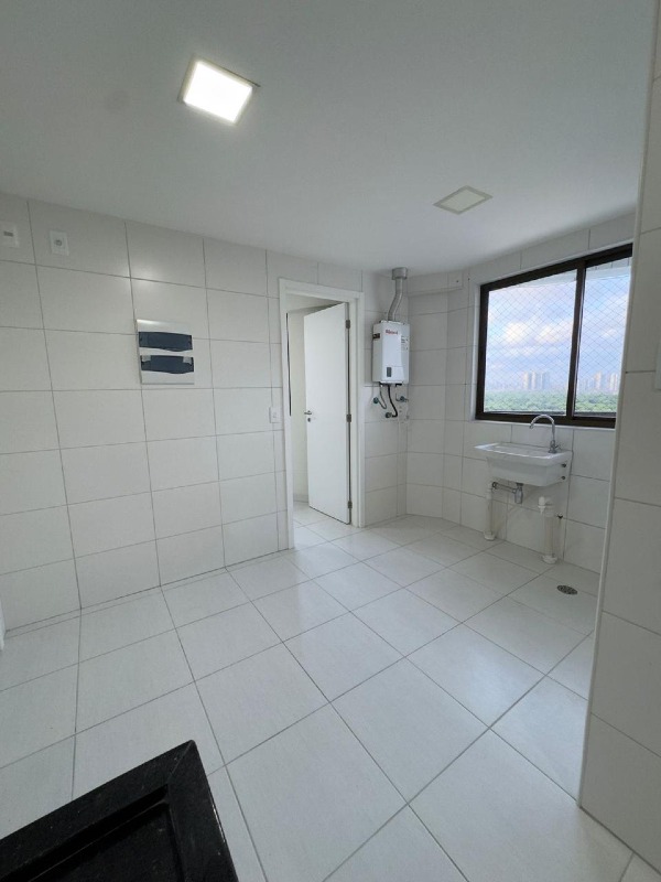 O apartamento, com 138m² de área interna, nascente, com boa ventilação, dispõe de sala para 02 ambientes, varanda, cozinha ampla, área de serviço, 04 quartos, sendo 03 suítes e 02 vagas de garagem.