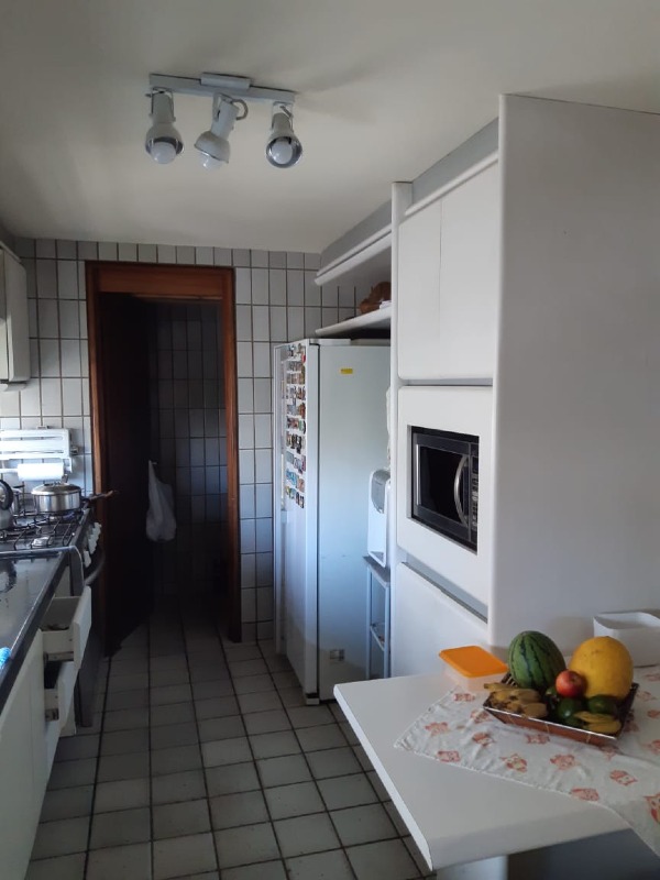 O apartamento com 350m² de área interna, nascente com excelente ventilação, dispõe de sala para 03 ambientes, varanda, lavabo, cozinha espaçosa com armários, área de serviço, despensa, dependência de empregada completa, 04 quartos, com planejados, sendo 03 suítes, 01 wc social com armário e box e 03 vagas de garagem cobertas e livres.