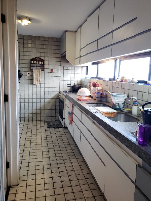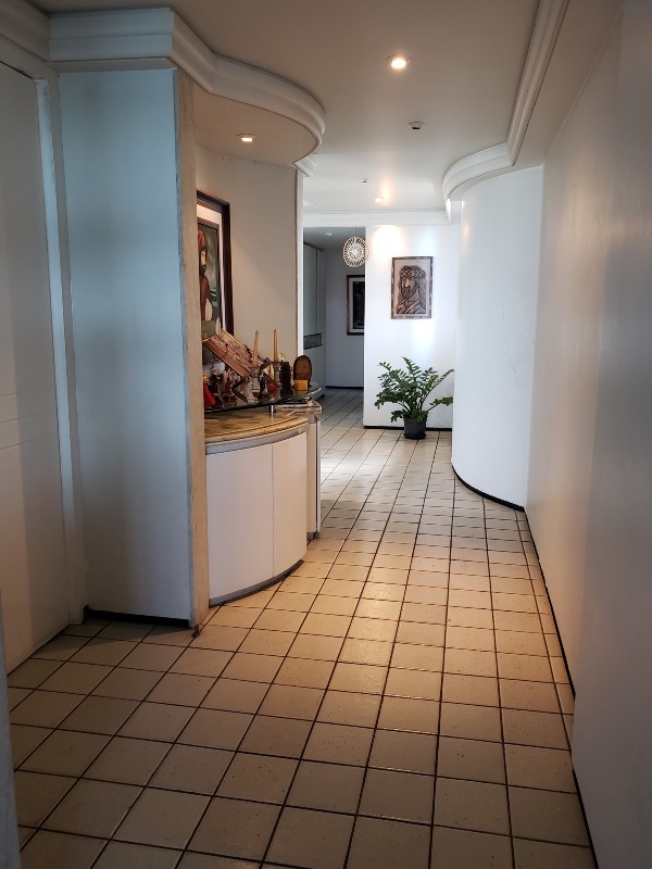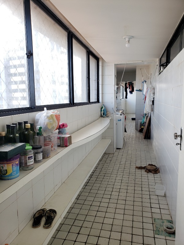 O apartamento, com 220m² de área interna, nascente e com excelente ventilação, dispõe de 02 salas para 02 ambientes com varanda, 04 quartos sendo os 04 suítes, 01 wc social, cozinha ampla com armários, área de serviço com dependência completa de empregada, e 02 vagas de garagem cobertas.