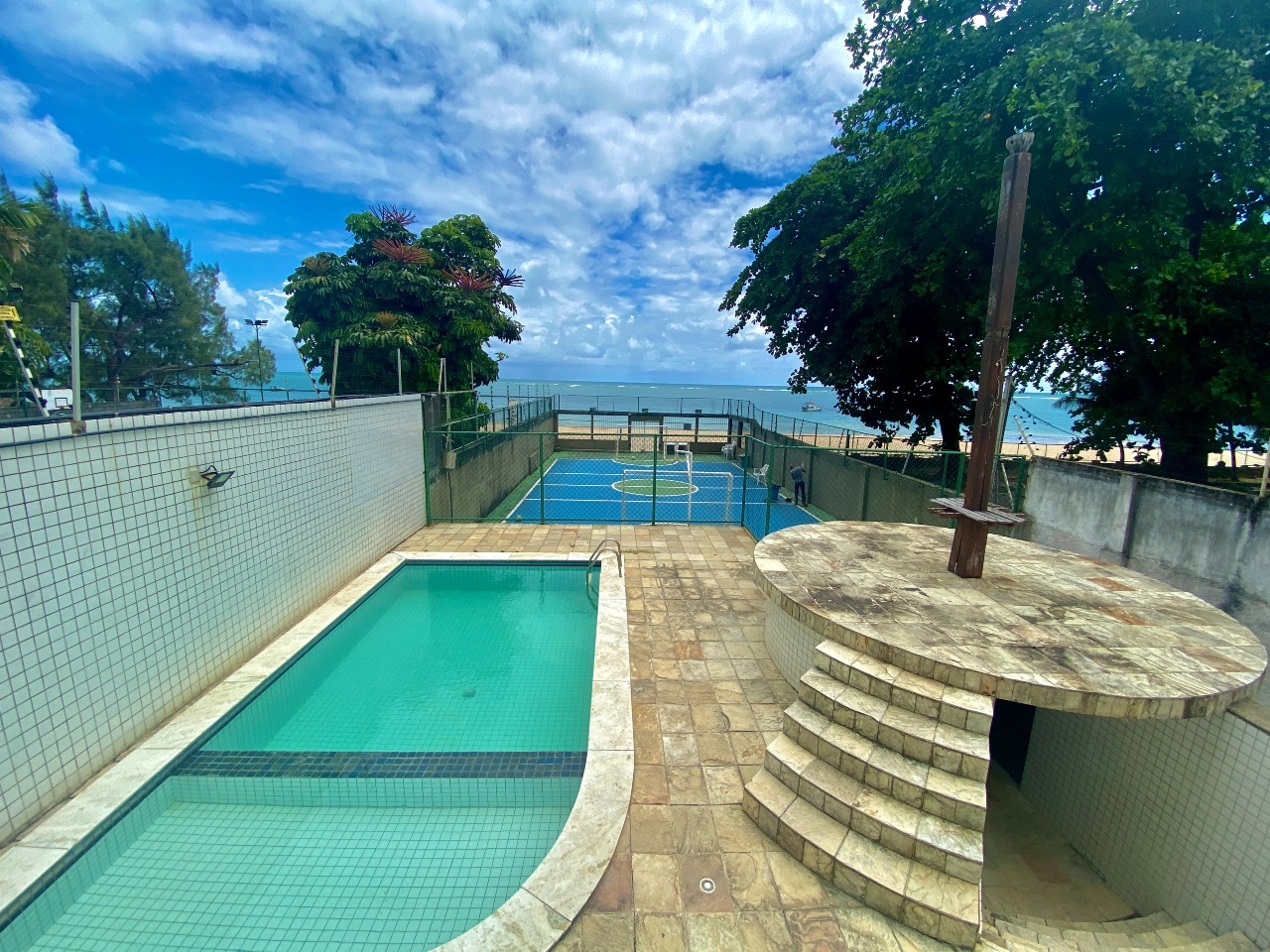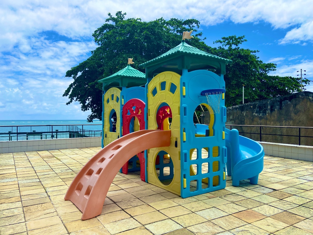 O Condomínio, estruturado, dispõe de portaria 24 horas, portão eletrônico, interfone, elevador, piscina, playground, quadra poliesportiva e salão de festas.