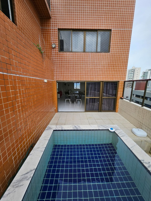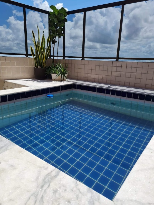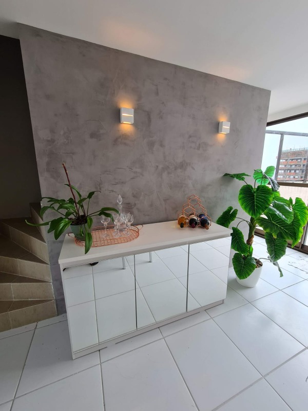 A cobertura douplex, com 289m² de área interna, andar alto, nascente e com excelente ventilação, dispõe de sala para 03 ambientes, 04 quartos, sendo os 04 suítes, 01 wc social, cozinha ampla com planejados, área de serviço e 04 vagas de garagem.