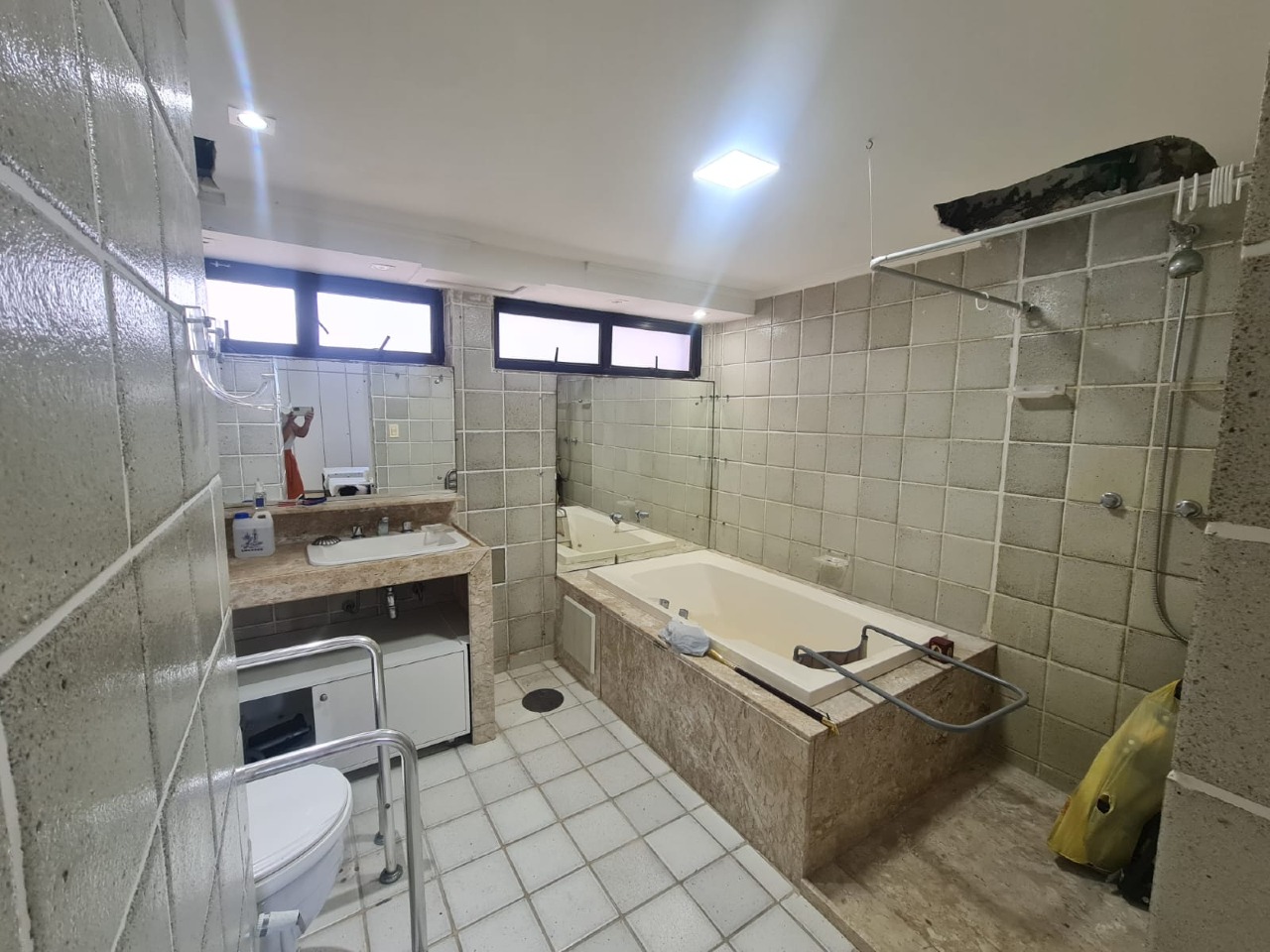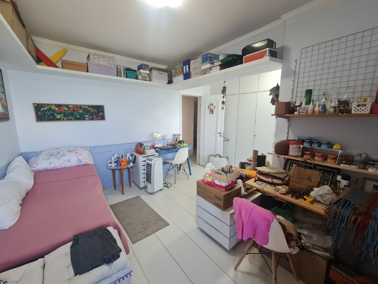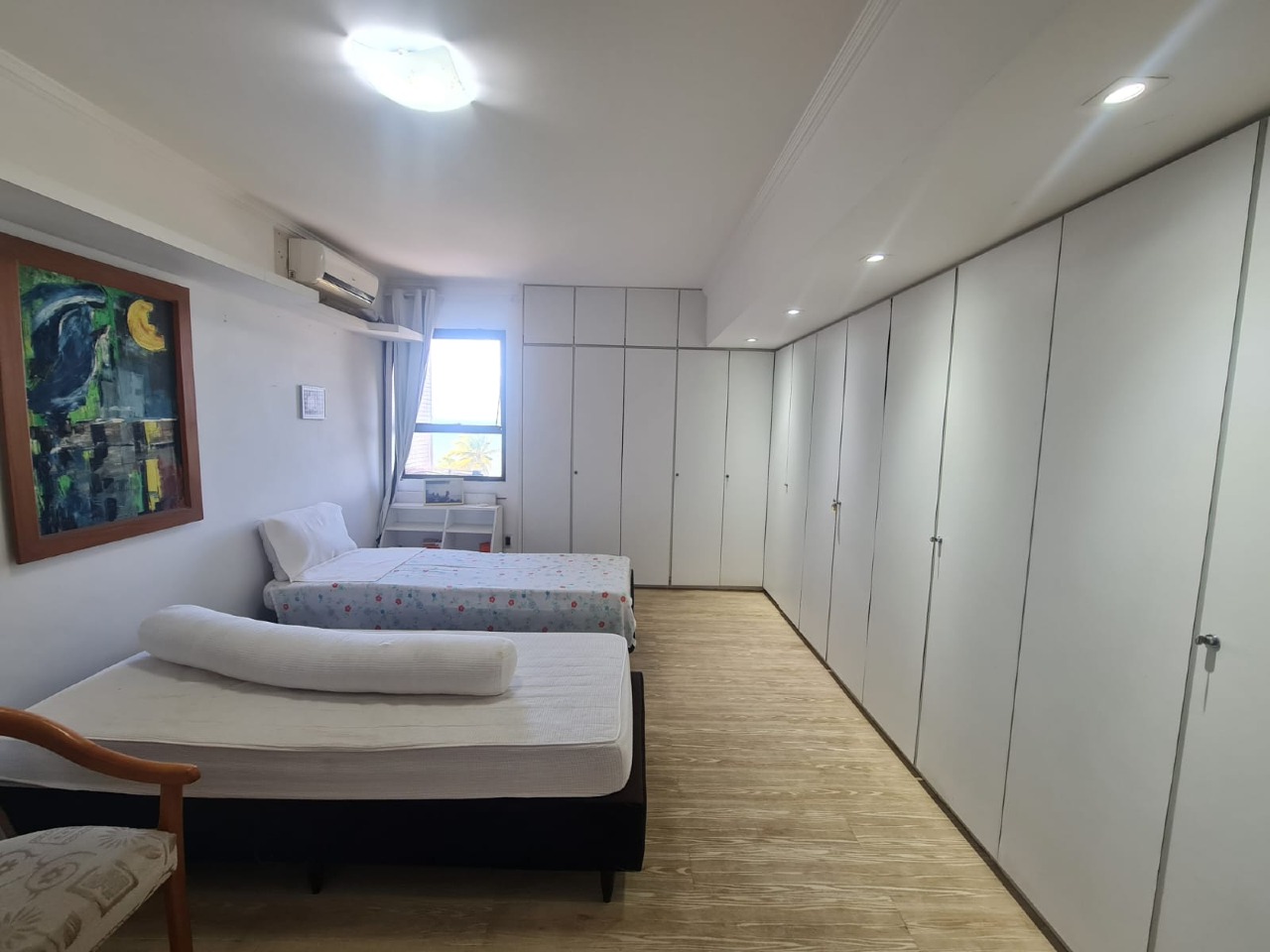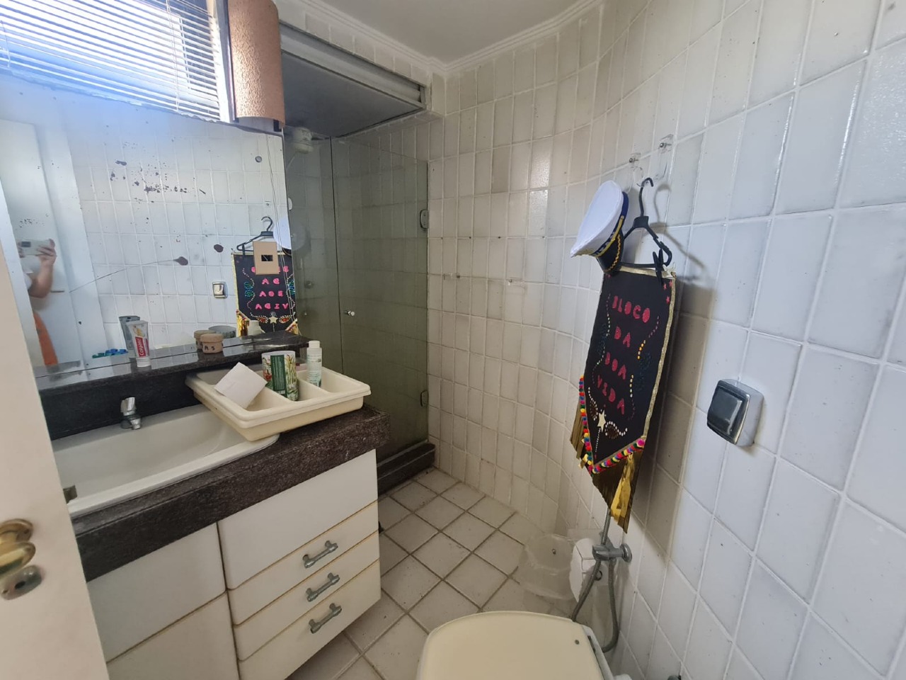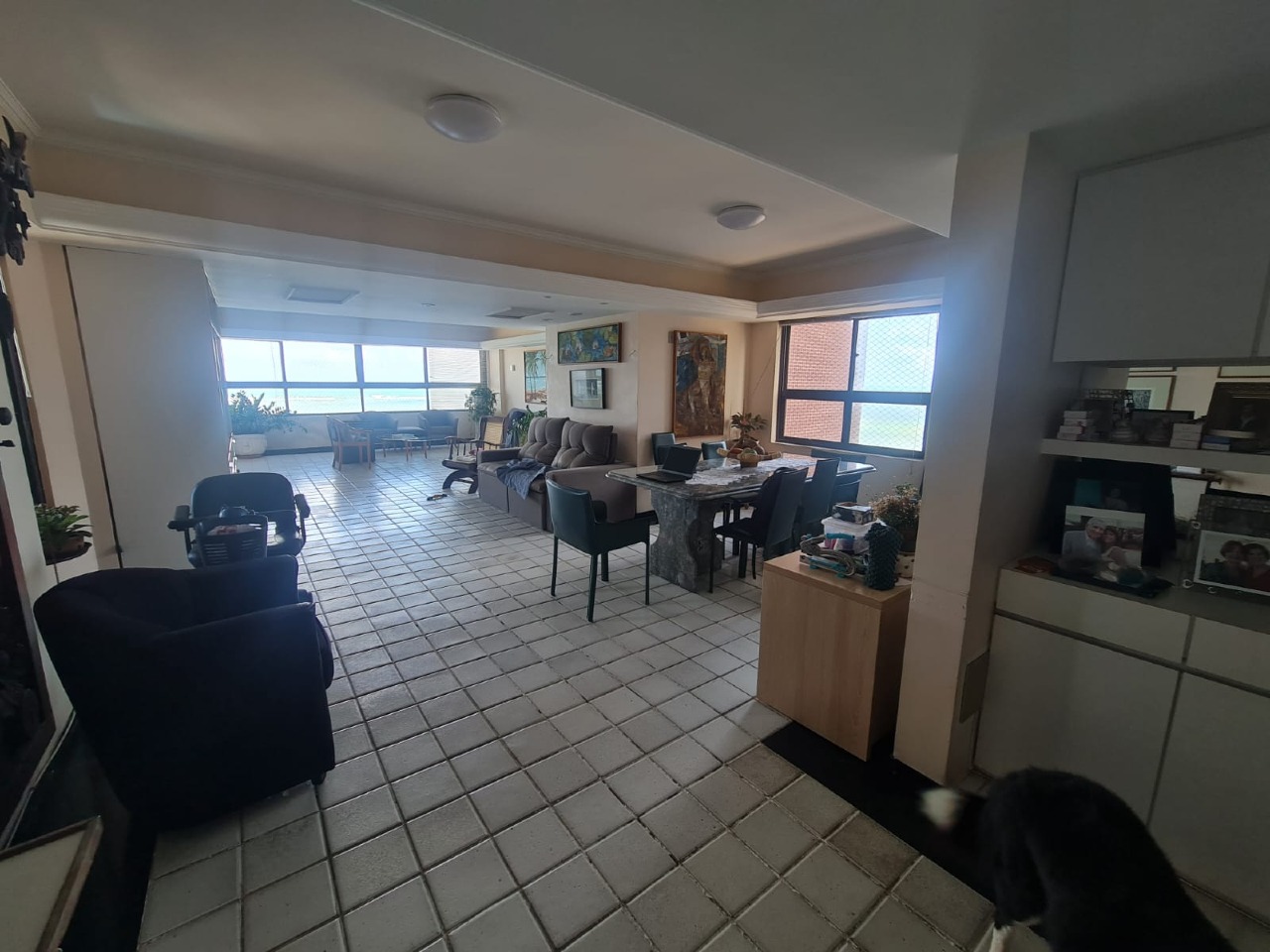 Com 230m², o apartamento é nascente e bem ventilado, com sala para três ambientes, três quartos, sendo 02 suítes, varanda ampla, WC social, cozinha, lavabo, área de serviço, dependência completa de empregada e duas vagas de garagem.