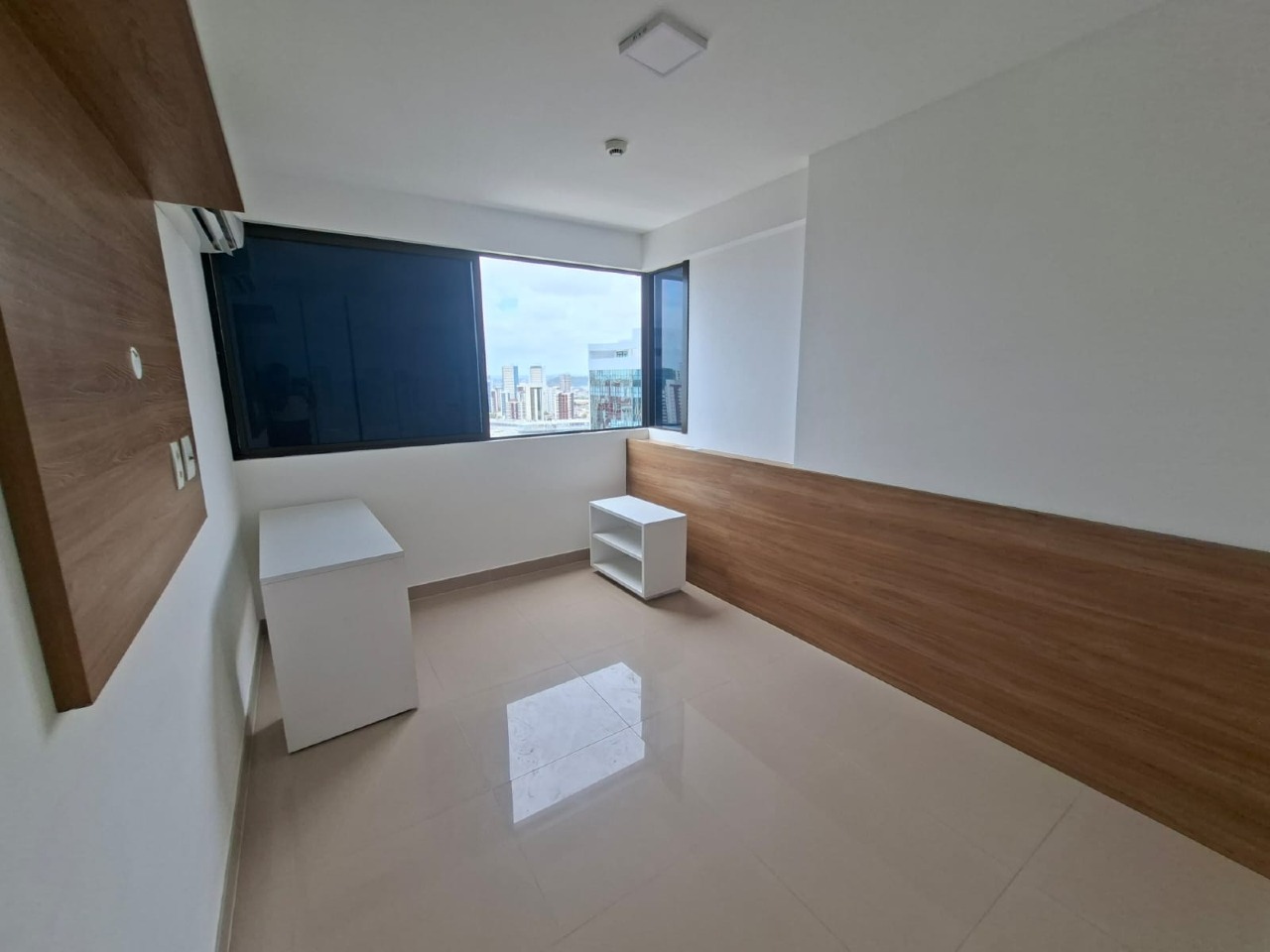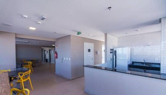 O apartamento, com 40m², frente sul, andar alto e com excelente ventilação, dispõe de sala, cozinha com armários e cooktop, ara condicionado instalados no quarto e sala, 01 suíte com planejados e 01 vaga de garagem coberta.