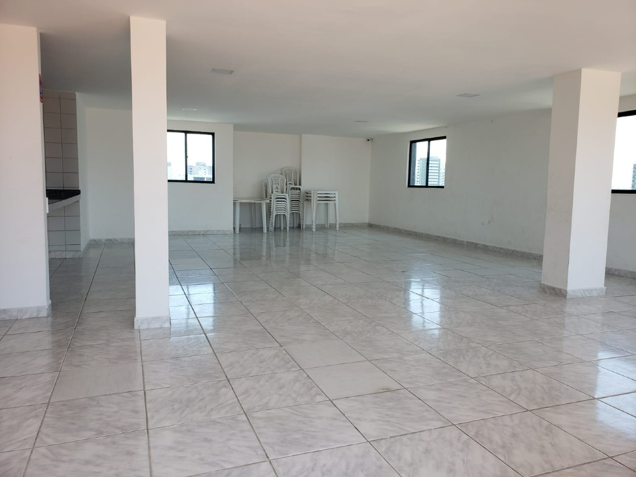 O apartamento, com 100m² de área interna, nascente, dispõe de sala para 02 ambientes, varanda, 03 quartos sendo 01 suítes, 01 wc social, cozinha, área de serviço com dependência completa de empregado e 02 vagas de garagem cobertas.
