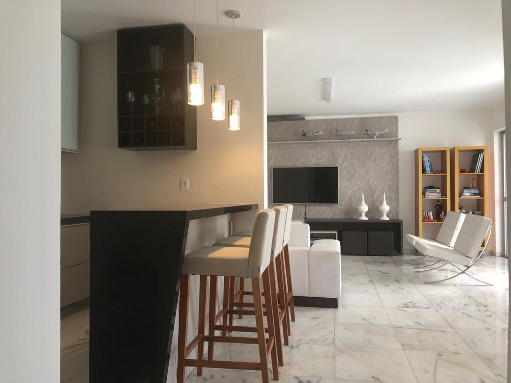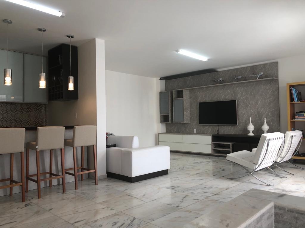 A cobertura com 270 m² de área interna, reformada, nascente e com excelente ventilação, no primeiro piso dispõe de sala para 03 ambientes, varanda, cozinha espaçosa com armários, área de serviço, dependência de empregada completa e 01 wc social com armário e box. No segundo piso contamos com uma sala para 03 ambientes, 04 quartos, com planejados, sendo 01 suíte, 01 wc social com armário e box. Ainda dispõe de 02 vagas de garagem cobertas.